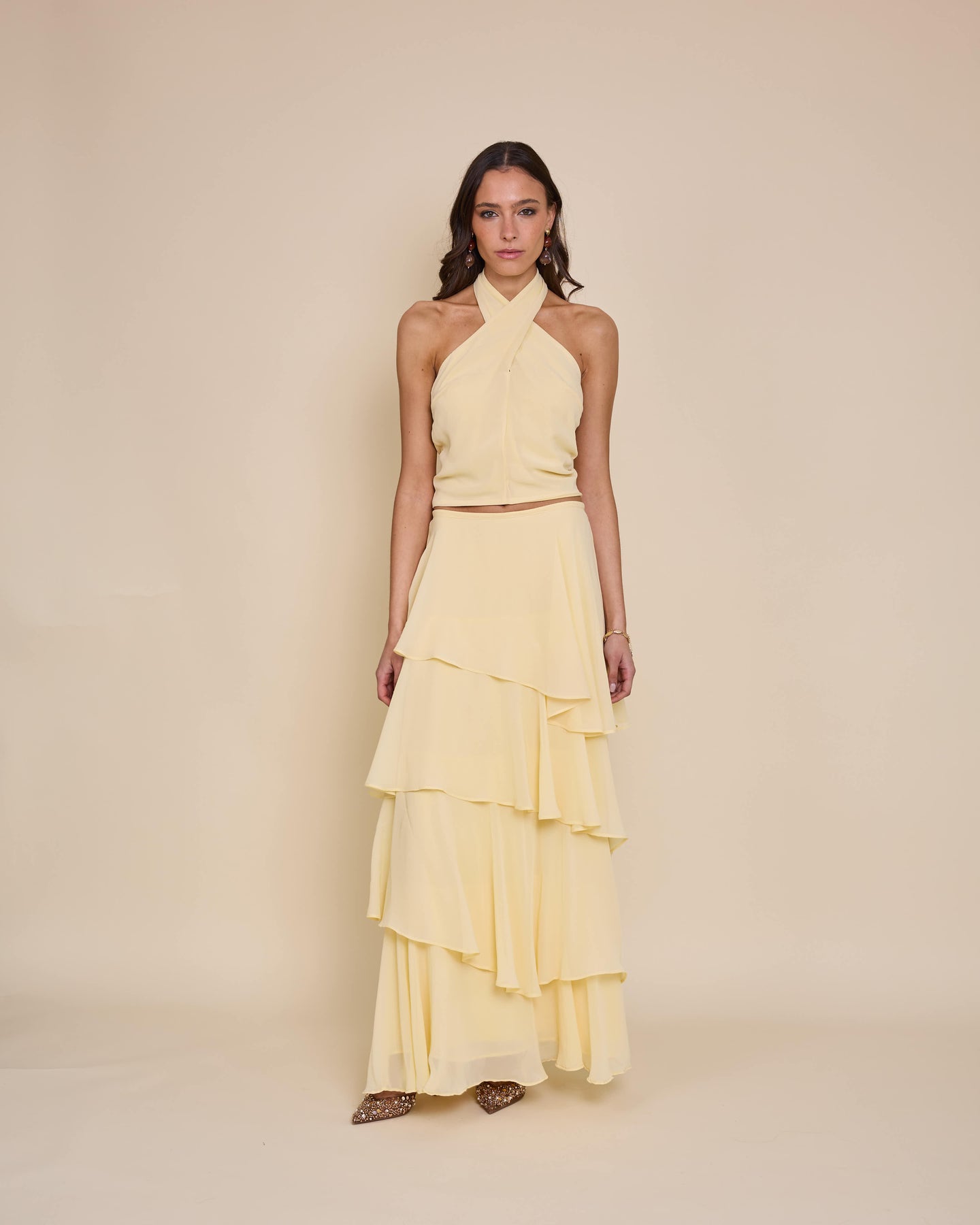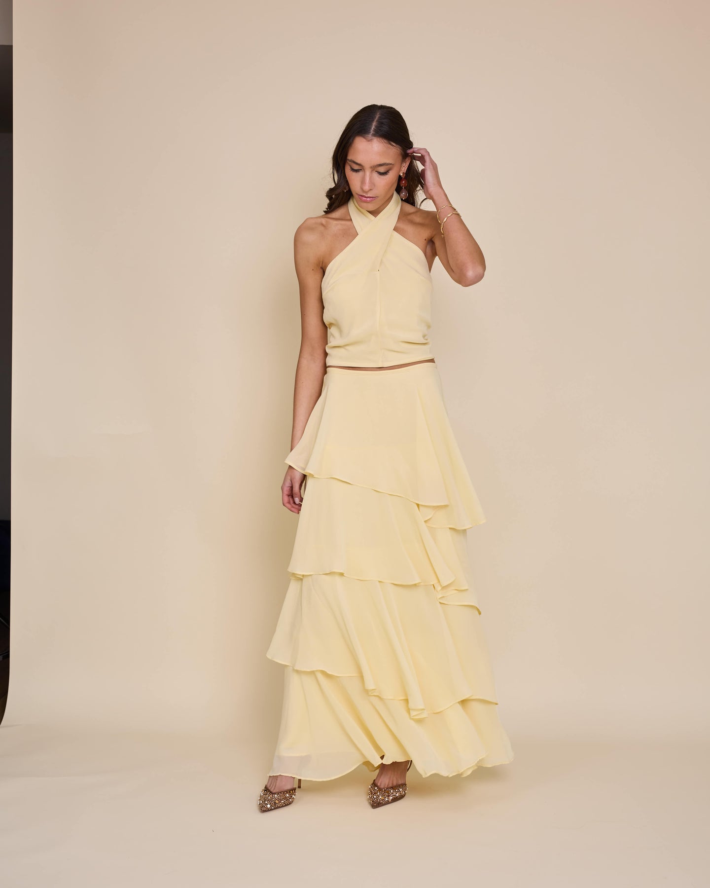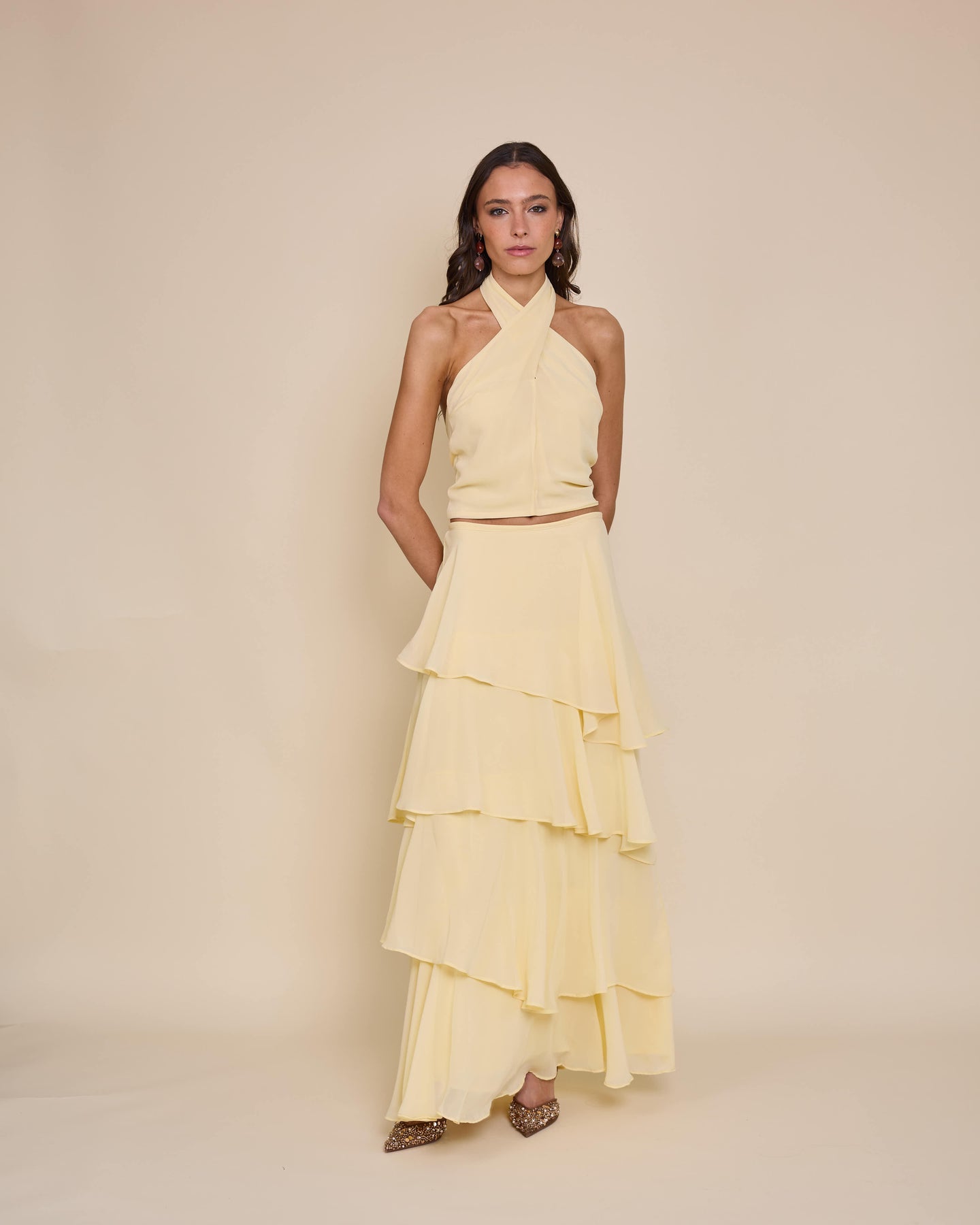 Su diseño en capas diagonales crea un efecto visual único que alarga y estiliza tu figura al máximo. Tiene ese aire español moderno que la hace diferente y súper chic. Combínala con el Top Lorenza y tendrás un look imposible de ignorar🔥😮💨