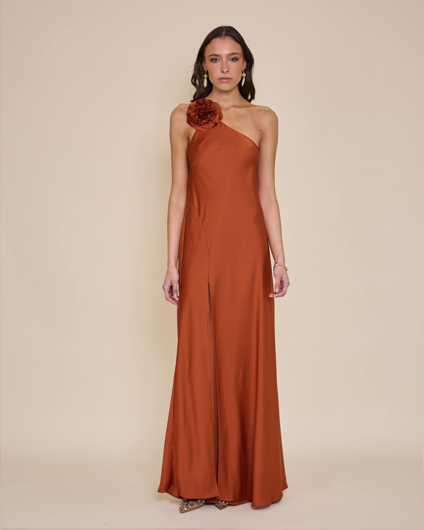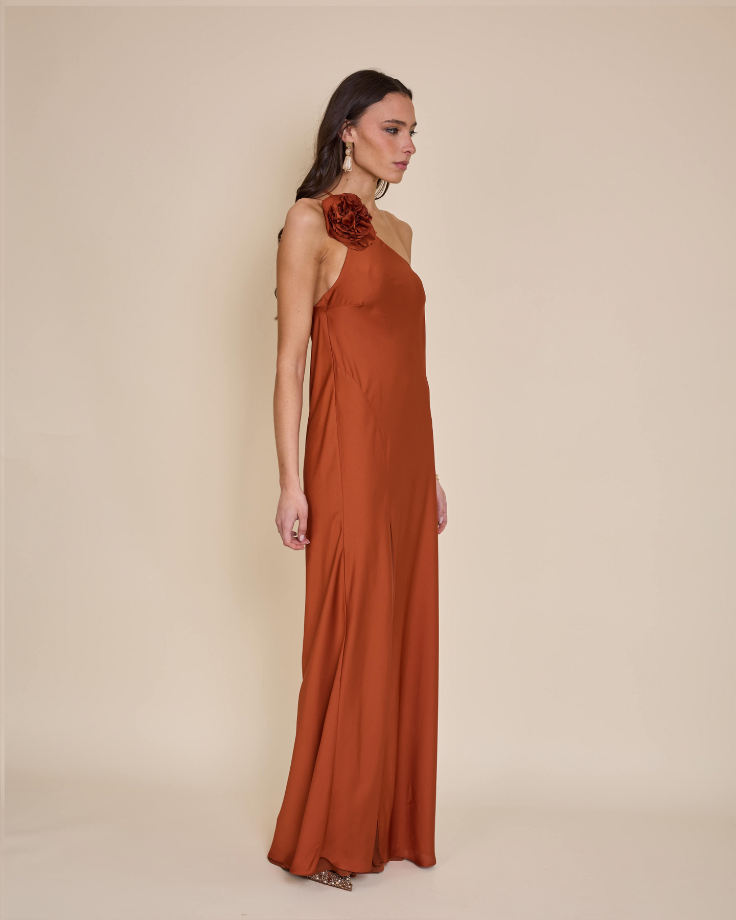 Confeccionado en seda y diseñado para robar miradas, este vestido mezcla lo clásico con lo audaz.