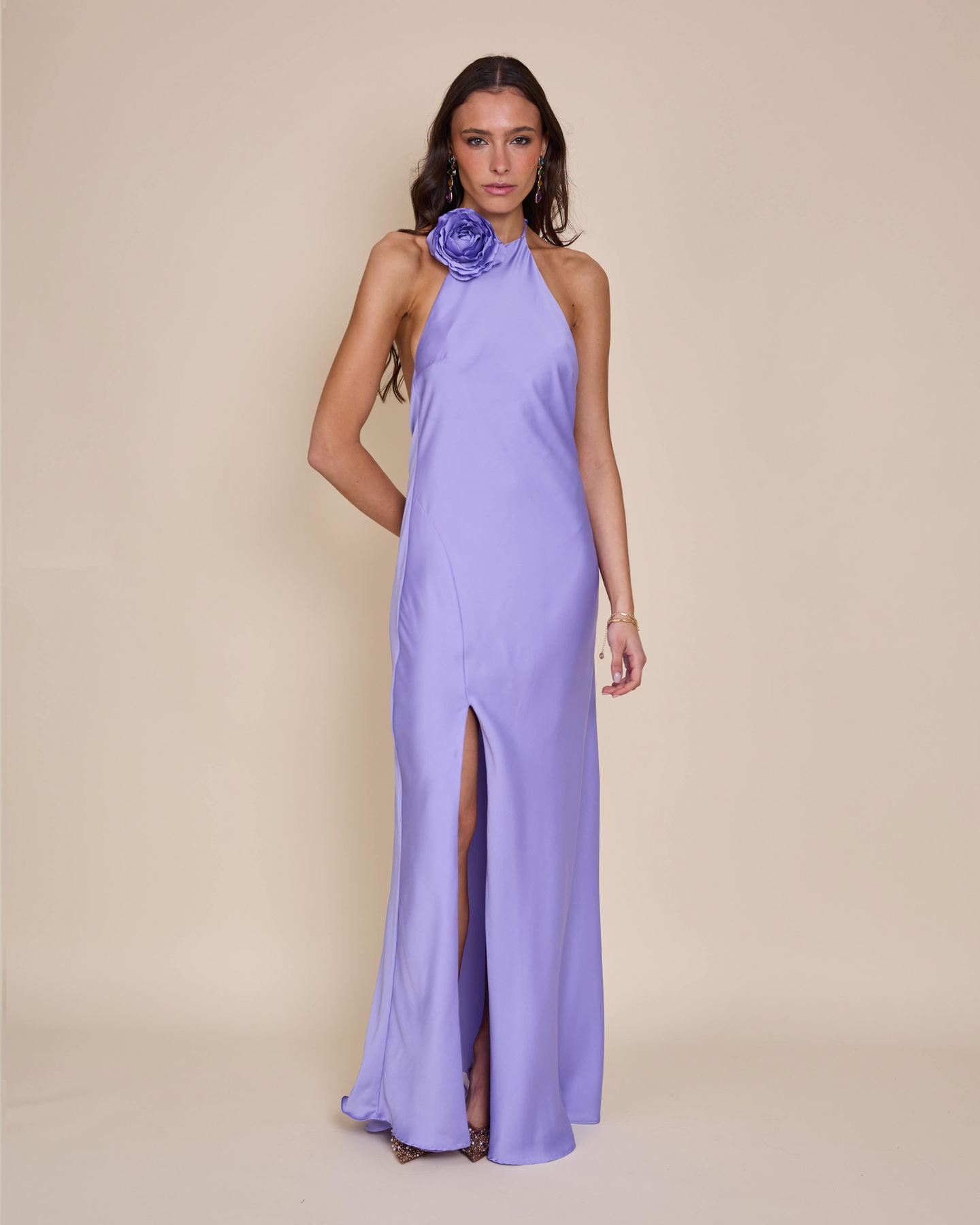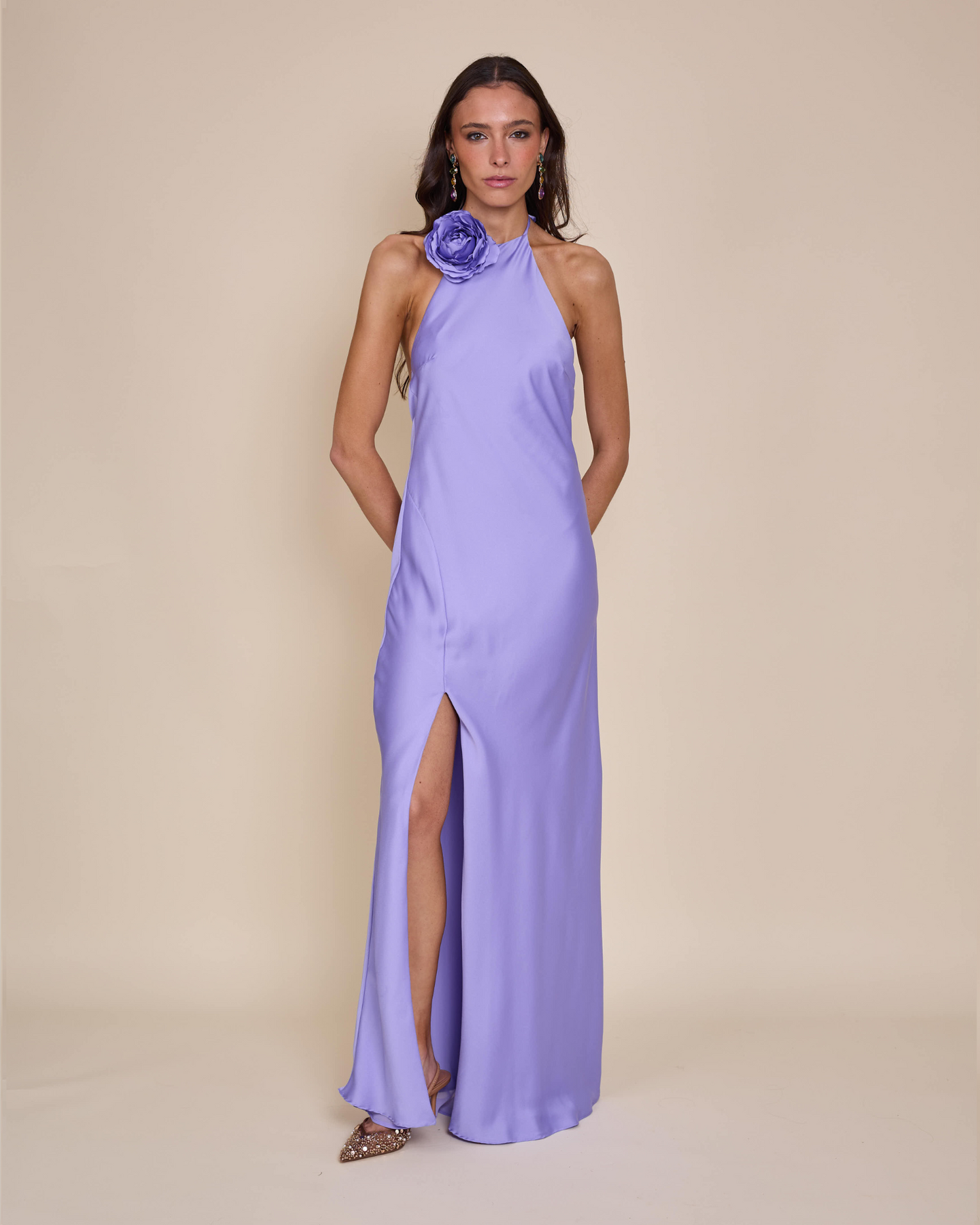 Escote halter, espalda en V y tajo lateral que suma movimiento y sensualidad✨