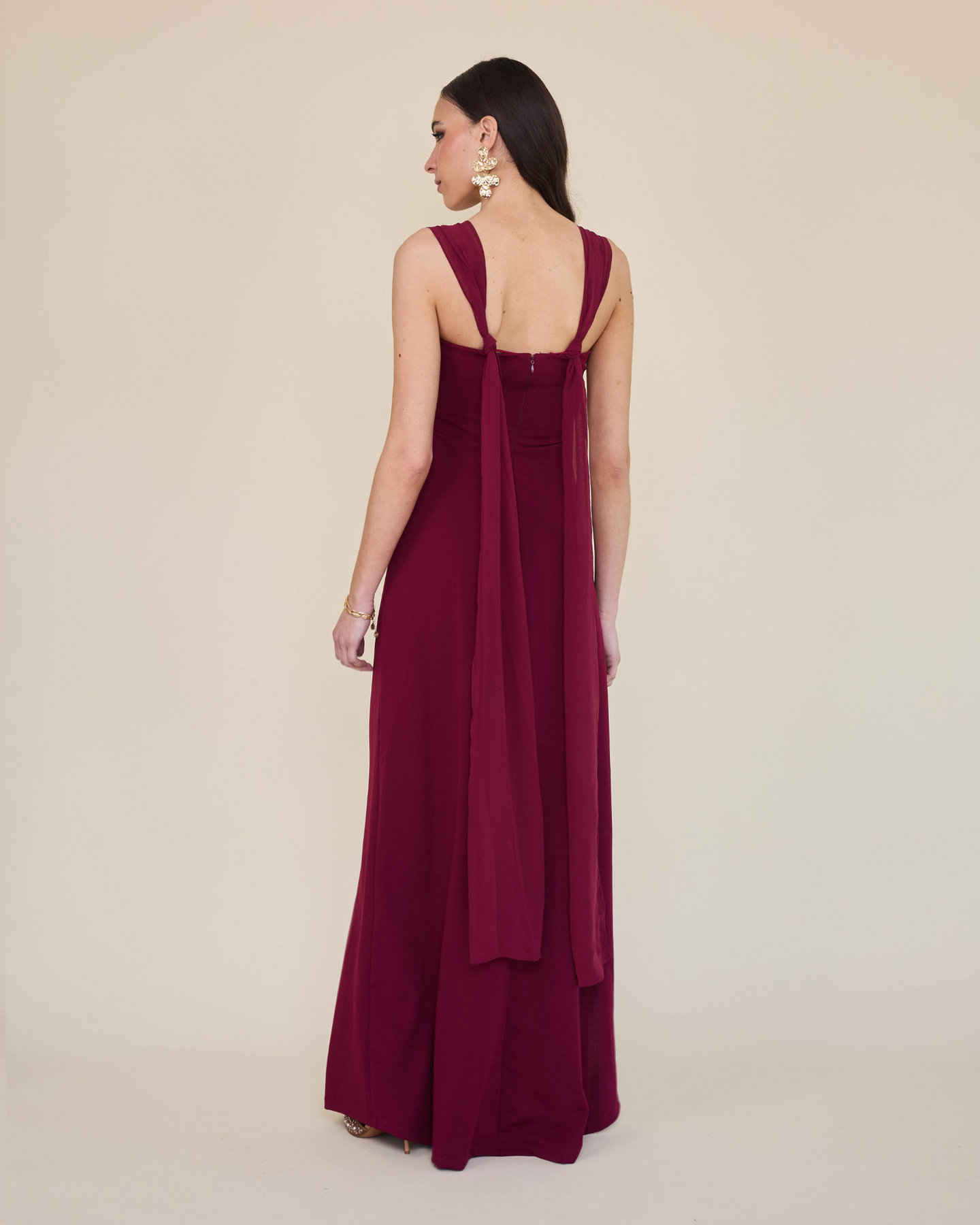 ¿El toque especial? Tiritas de gasa que se anudan atrás y le suman un aire etéreo y sofisticado💫